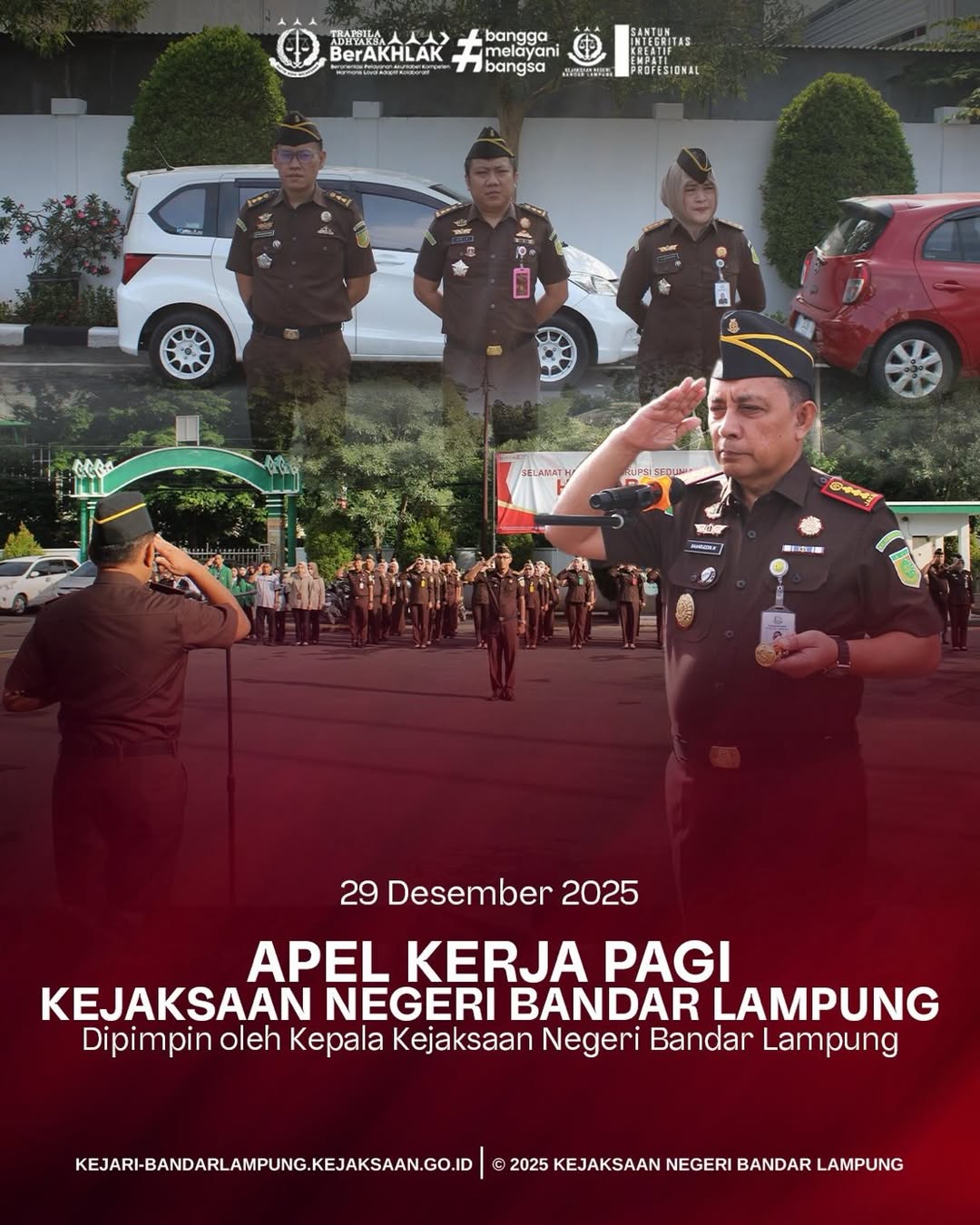 Kejaksaan Negeri Bandar Lampung melaksanakan Apel Kerja Pagi pada Senin, 29 Desember 2025, bertempat di halaman Kantor Kejaksaan Negeri Bandar Lampung Senin, 5 Januari 2026
