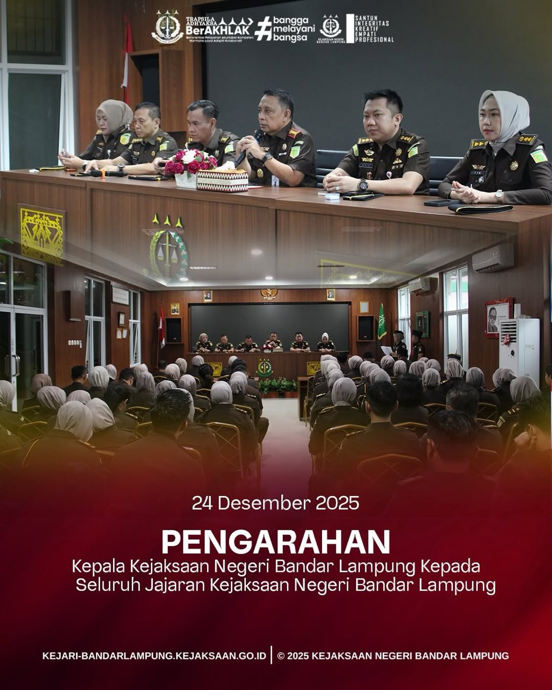 Kejaksaan Negeri Bandar Lampung Melaksanakan Kegiatan Pengarahan Pimpinan, pada Rabu, 24 Desember 2025. Senin, 5 Januari 2026