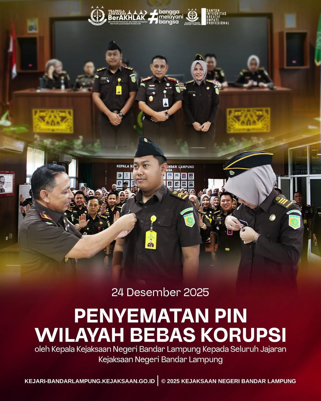 Kejaksaan Negeri Bandar Lampung melaksanakan kegiatan Penyematan Pin Wilayah Bebas Korupsi (WBK) Senin, 5 Januari 2026