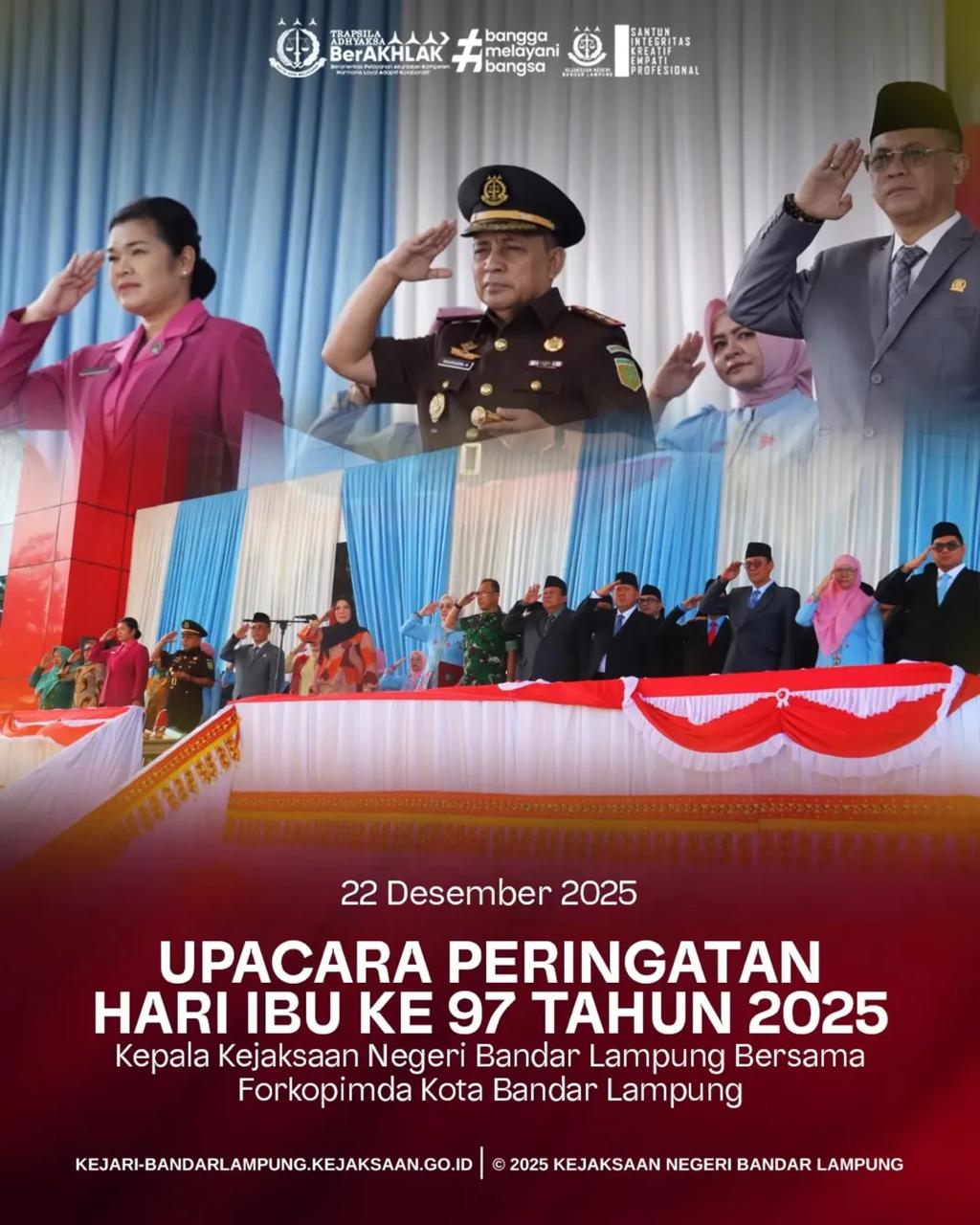 Kejaksaan Negeri Bandar Lampung Melaksanakan Upacara Peringatan Hari Ibu Bersama Forkopimda Kota Bandar Lampung, pada Senin, 22 Desember 2025. Senin, 5 Januari 2026