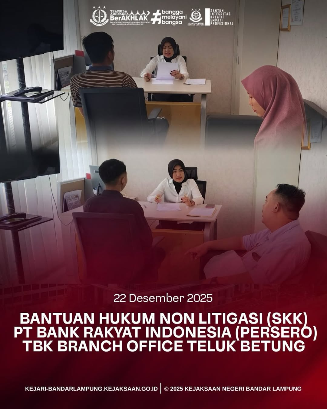 Kejaksaan Negeri Bandar Lampung Melaksanakan Kegiatan Bantuan Hukum Non Litigasi (SKK) PT BANK RAKYAT INDONESIA (PERSERO) TBK BRANCH OFFICE TELUK BETUNG, pada Senin, 22 Desember 2025. Senin, 5 Januari 2026