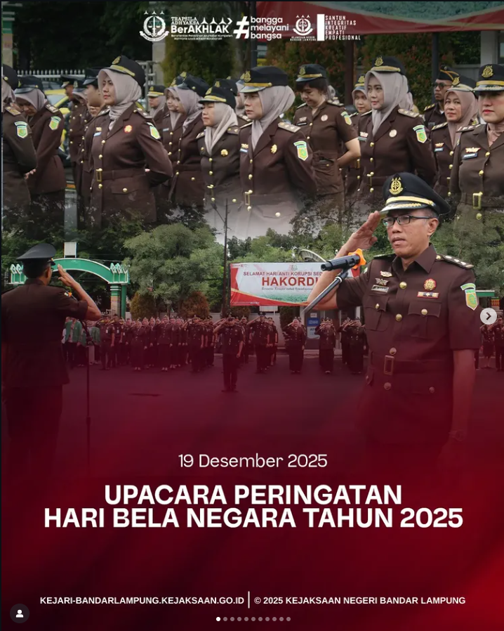 Kejaksaan Negeri Bandar Lampung melaksanakan Upacara Peringatan Hari Bela Negara Tahun 2025 Jumat, 19 Desember 2025