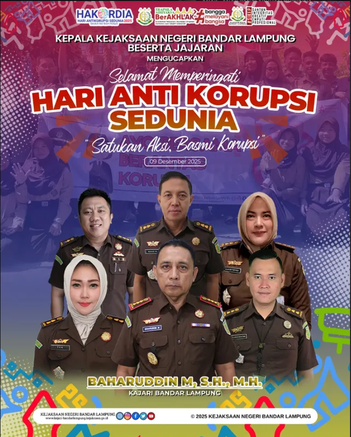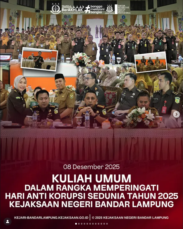 Kejaksaan Negeri Bandar Lampung menyelenggarakan kegiatan Kuliah Umum dalam rangka memperingati Hari Anti Korupsi Sedunia (HAKORDIA) Tahun 2025 Senin, 8 Desember 2025