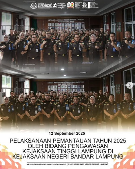 Pelaksanaan Pemantauan Tahun 2025 oleh Bidang Pengawasan Kejaksaan Tinggi Lampung di Kejaksaan Negeri Bandar Lampung Jumat, 12 September 2025