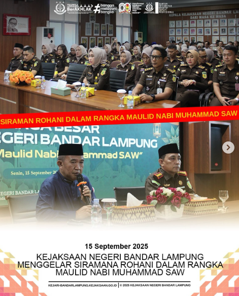 Kejaksaan Negeri Bandar Lampung Menggelar Siraman Rohani dalam Rangka Maulid Nabi SAW Senin, 15 September 2025