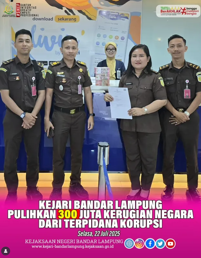 Kejari Bandar Lampung Setorkan Uang Pengganti Kerugian Negara dalam Perkara Korupsi SPAM PDAM Way Rilau Selasa, 22 Juli 2025