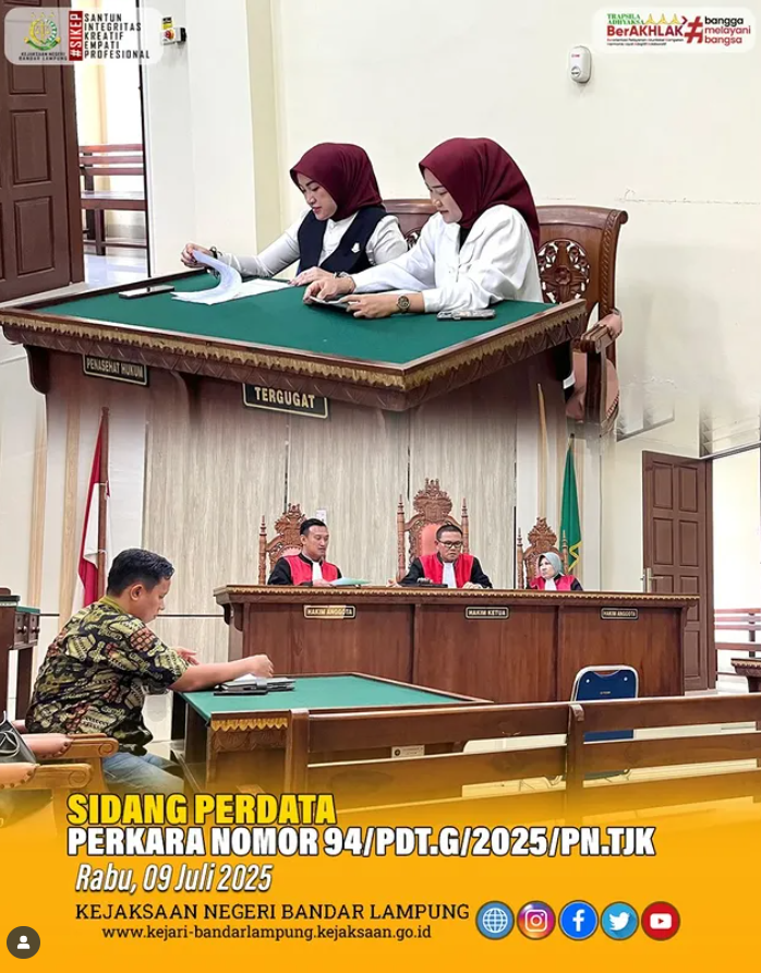 Kejari Bandar Lampung Hadiri Sidang Perdata Perbuatan Melawan Hukum di PN Bandar Lampung Rabu, 9 Juli 2025
