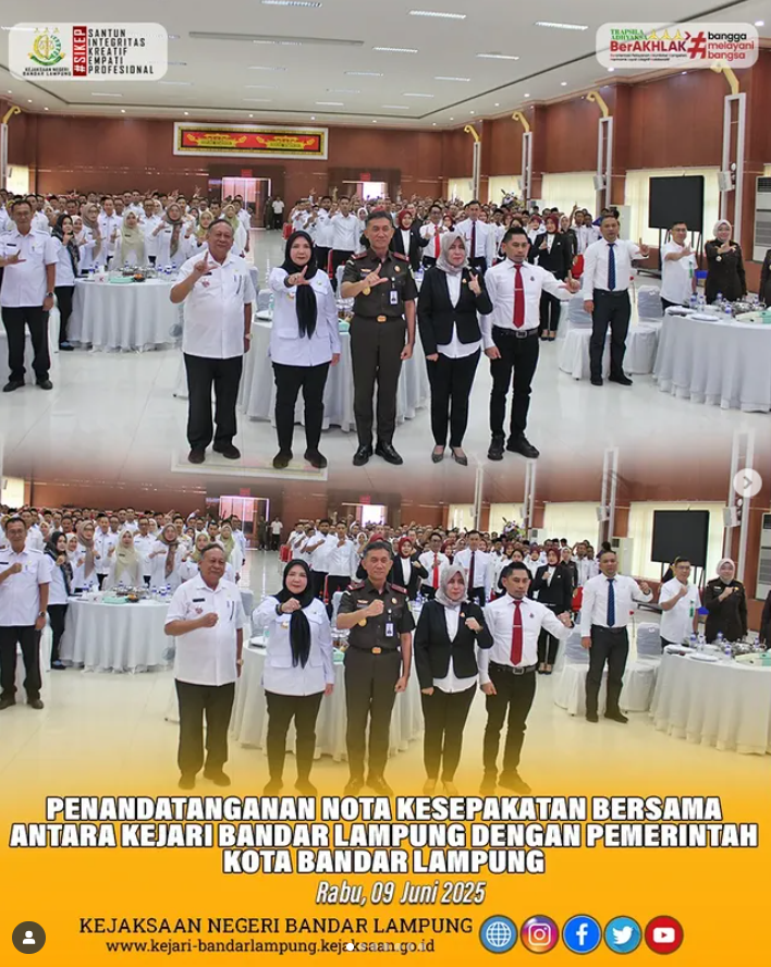 Kejari Bandar Lampung Teken MoU dengan Pemkot Bandar Lampung: Wujudkan Tata Kelola Pemerintahan yang Baik dan Berdampak Rabu, 9 Juli 2025
