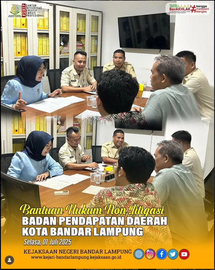 Kejari Bandar Lampung Laksanakan Bantuan Hukum Non Litigasi untuk Pemulihan Keuangan Negara Selasa, 1 Juli 2025