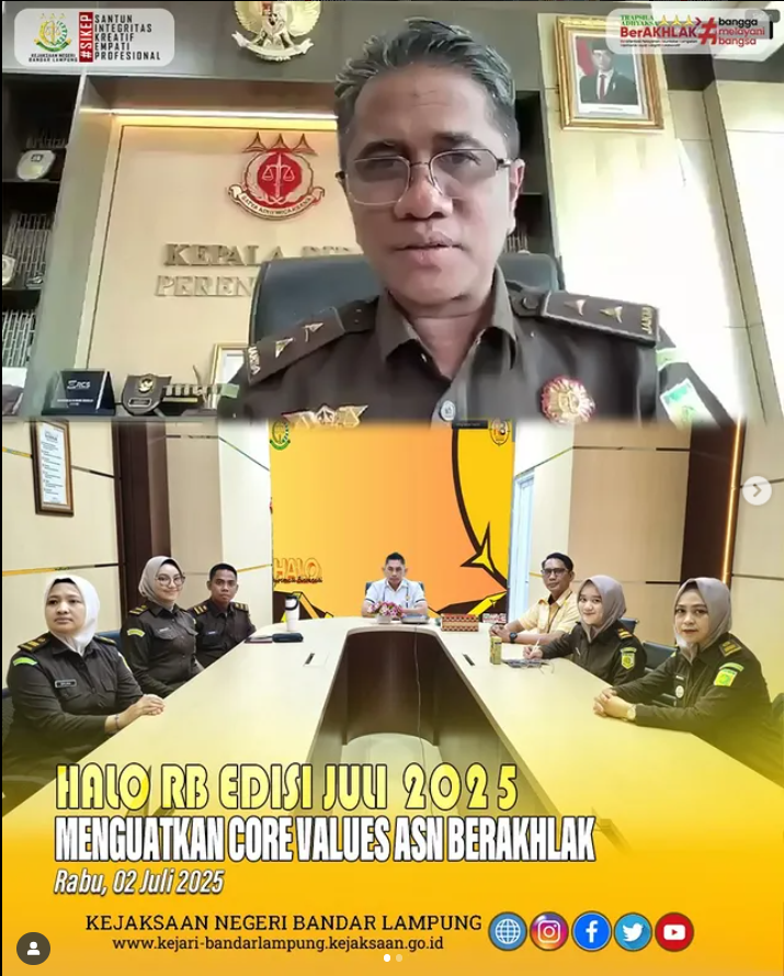 Kejari Bandar Lampung Ikuti HALO RB Edisi Juli 2025: Memperkuat Core Values ASN BerAKHLAK Rabu, 2 Juli 2025
