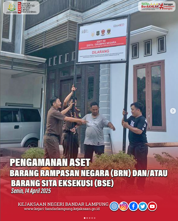 Kejaksaan Negeri Bandar Lampung Mengamankan Aset Barang Rampasan Negara (BRN) Dan Barang Sita Eksekusi (BSE) Senin, 14 April 2025