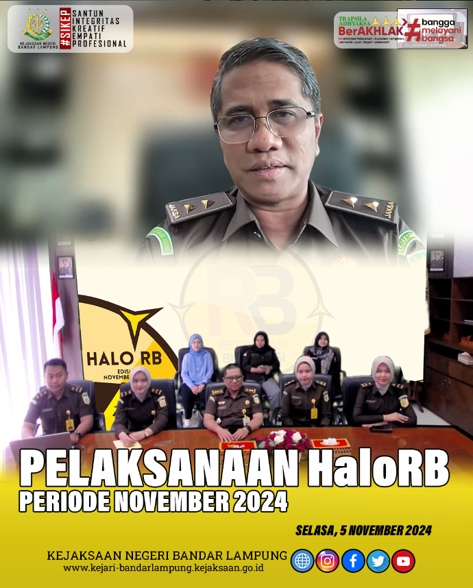 Kejaksaan Negeri Bandar Lampung mengikuti Pelaksanaan HaloRB Periode November Tahun 2024 secara Virtual Selasa, 5 November 2024