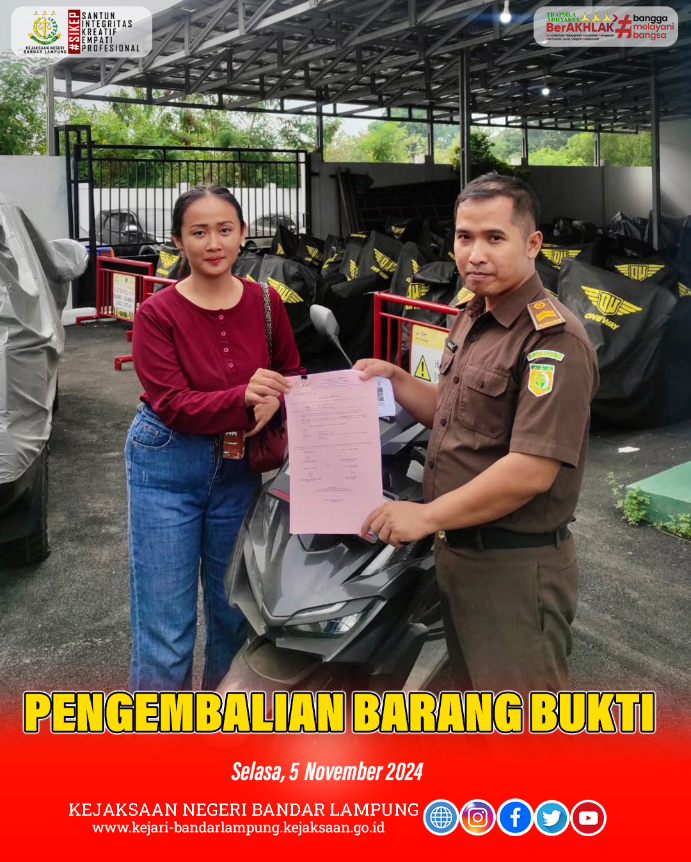 Seksi Pemulihan Aset dan Pengelolaan Barang Bukti, mewakili Penuntut Umum melaksanakan pengembalian barang bukti kepada pemiliknya Selasa, 5 November 2024