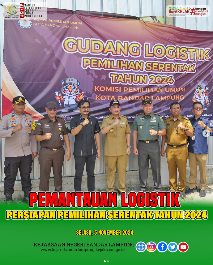 Kajari Bandar Lampung bersama dengan Forkopimda melakukan pemantauan Logistik dalam persiapan Pemilihan Kepala Daerah Serental Tahun 2024 di Gudang KPU Bandar Lampung Selasa, 5 November 2024