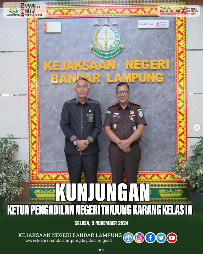 Kajari Bandar Lampung menyambut Kunjungan Ketua Pengadilan Negeri Tanjung Karang Kelas IA Selasa, 5 November 2024