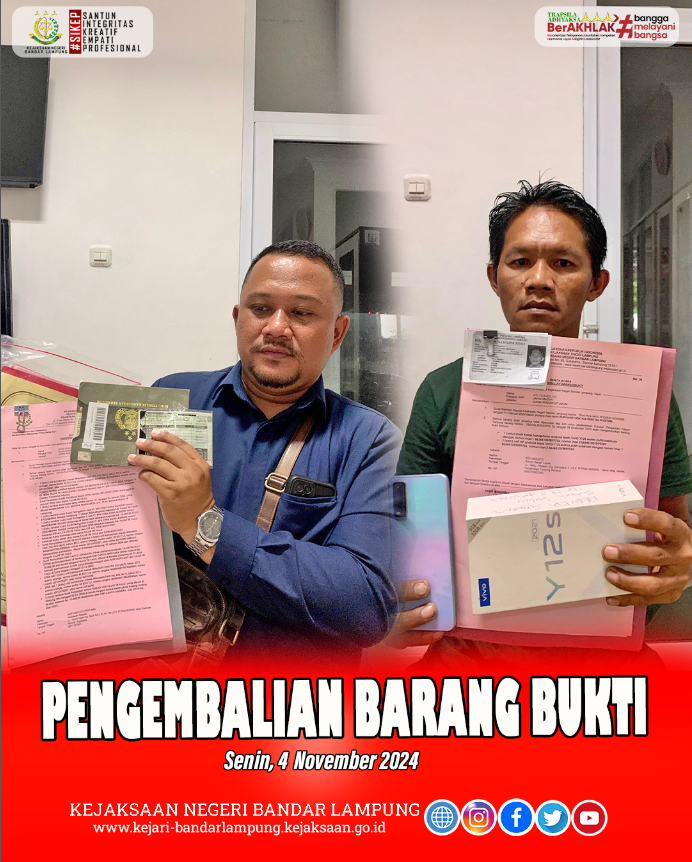 Seksi Pemulihan Aset dan Pengelolaan Barang Bukti Kejari Bandar Lampung Melaksanakan kegiatan Pengembalian Barang Bukti Senin, 4 November 2024