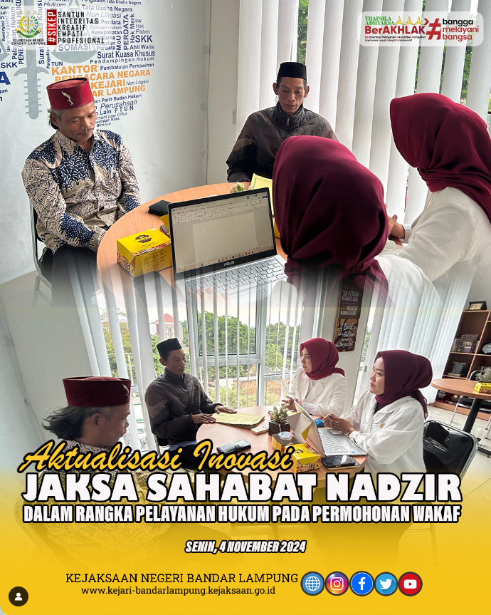 Datun Kejari Bandar Lampung lakukan kegiatan Aktualisasi Inovasi Jaksa Sahabat Nadzir dalam rangka pelayanan hukum pada permohonan wakaf Senin, 4 November 2024