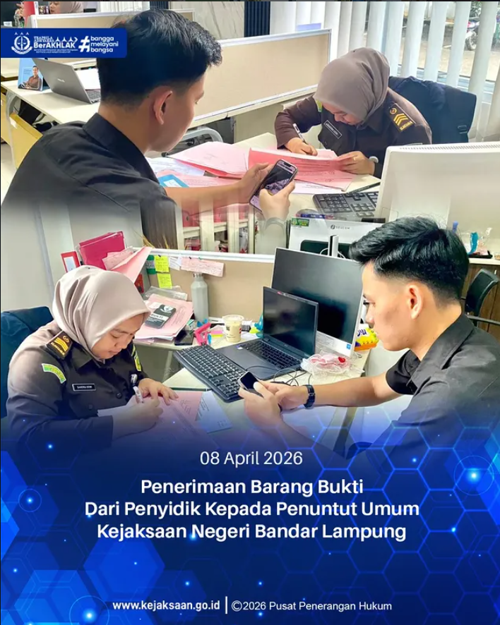 penerimaan barang bukti dari penyidik kepada penuntut umum kejaksaan tinggi bandar lampung Rabu, 8 April 2026