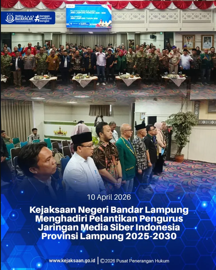 kejaksaan negeri bandar lampung menghadiri pelantikan pengurus jaringan media siber indonesia provinsi lampung 2025-2030 Jumat, 10 April 2026