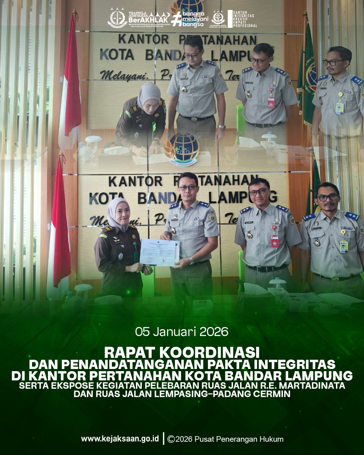 Kejaksaan Negeri Bandar Lampung Hadiri Ekspose dan Rapat Koordinasi Pelebaran Jalan R.E. Martadinata dan Lempasing–Padang Cermin Senin, 5 Januari 2026