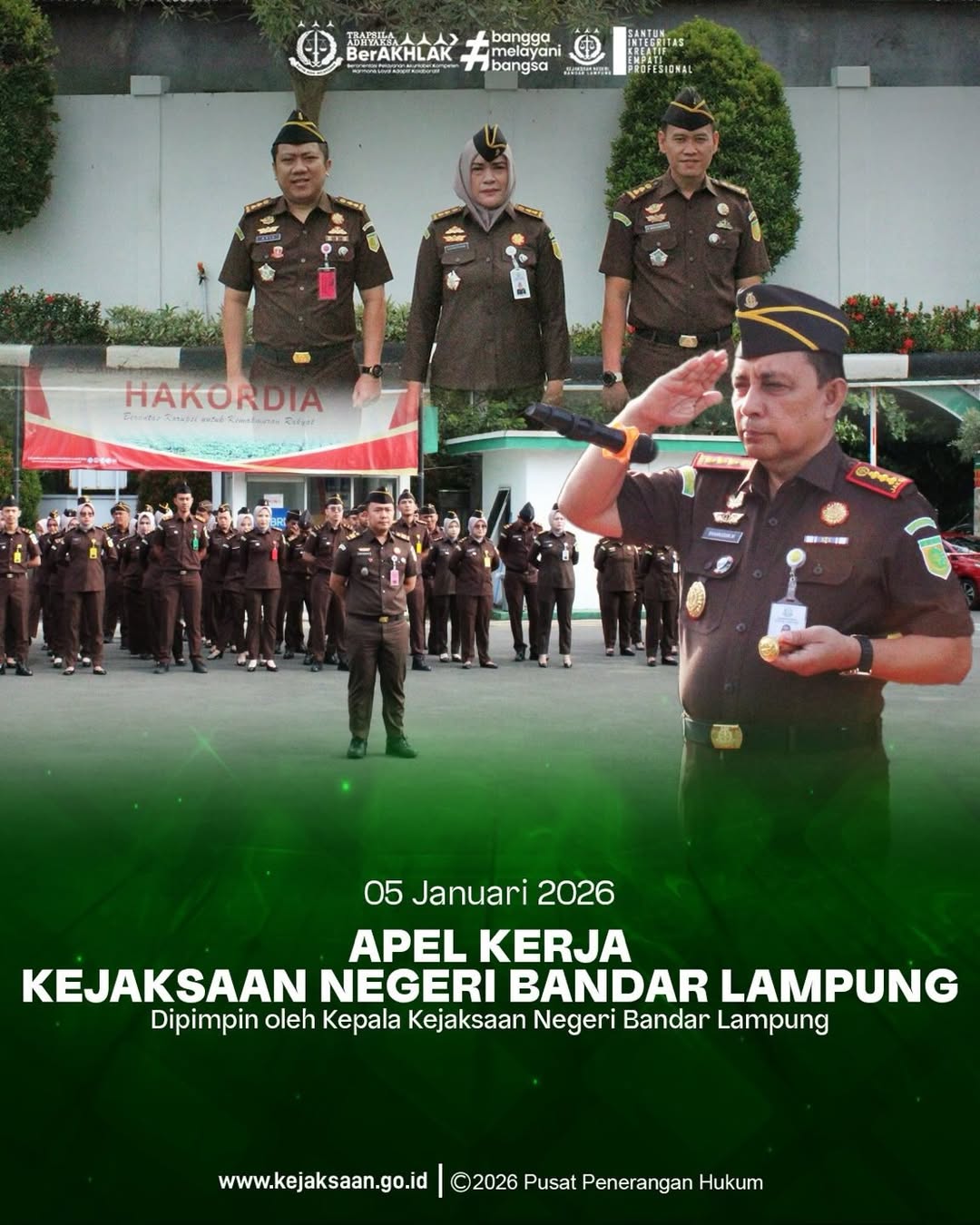 Kejaksaan Negeri Bandar Lampung Melaksanakan Apel Kerja, pada Senin, 5 Januari 2026. Senin, 5 Januari 2026
