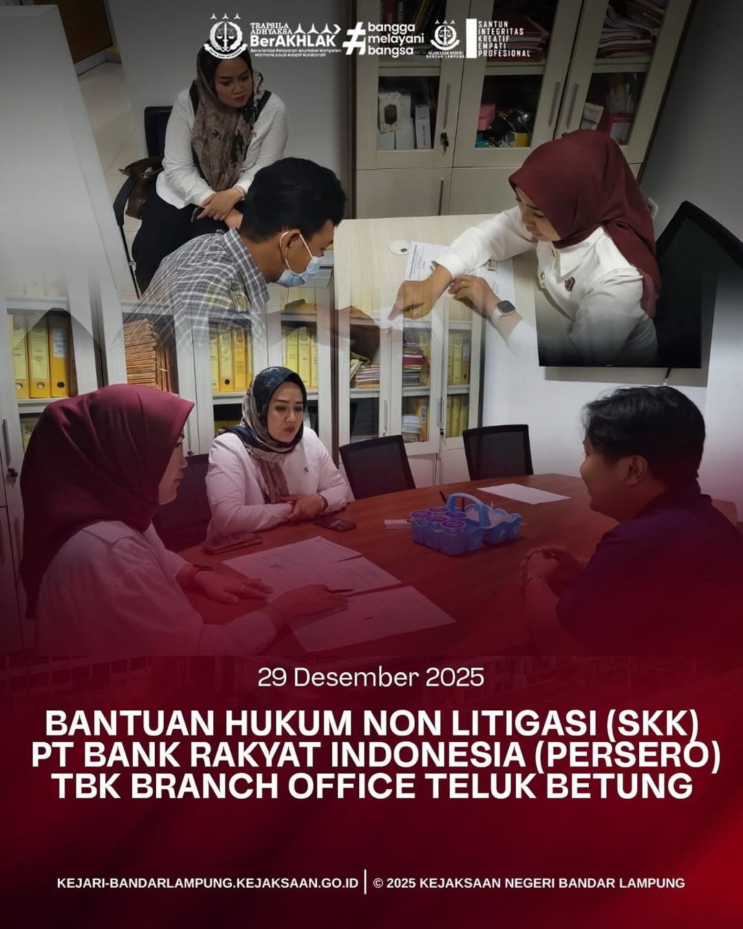 Kejaksaan Negeri Bandar Lampung Laksanakan Mediasi Bantuan Hukum Non Litigasi Bidang Datun, pada Senin, 29 Desember 2025. Senin, 5 Januari 2026