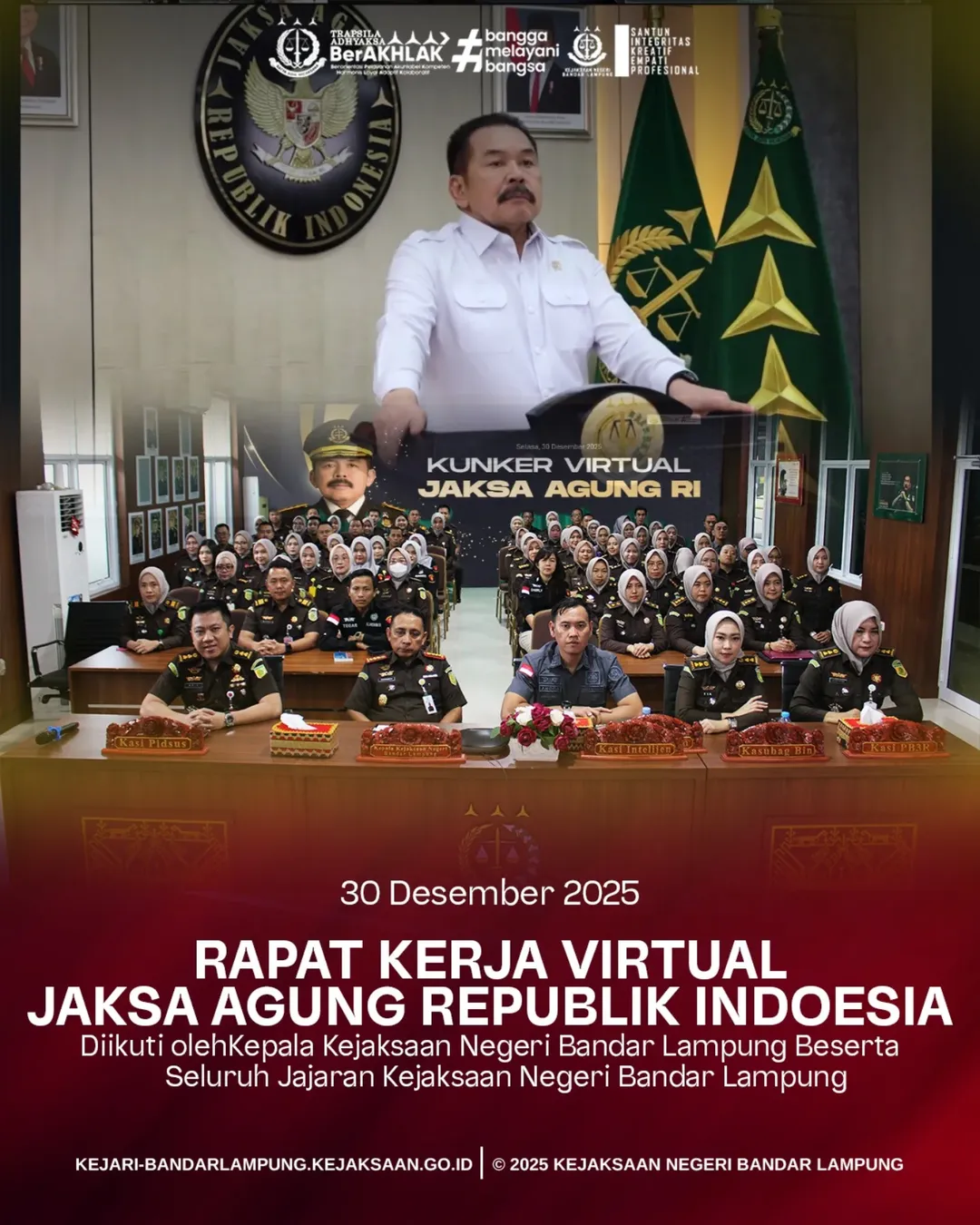 Kejaksaan Negeri Bandar Lampung Mengikuti Rapat Kerja Virtual Jaksa Agung Republik Indonesia, pada Selasa, 30 Desember 2025. Senin, 5 Januari 2026