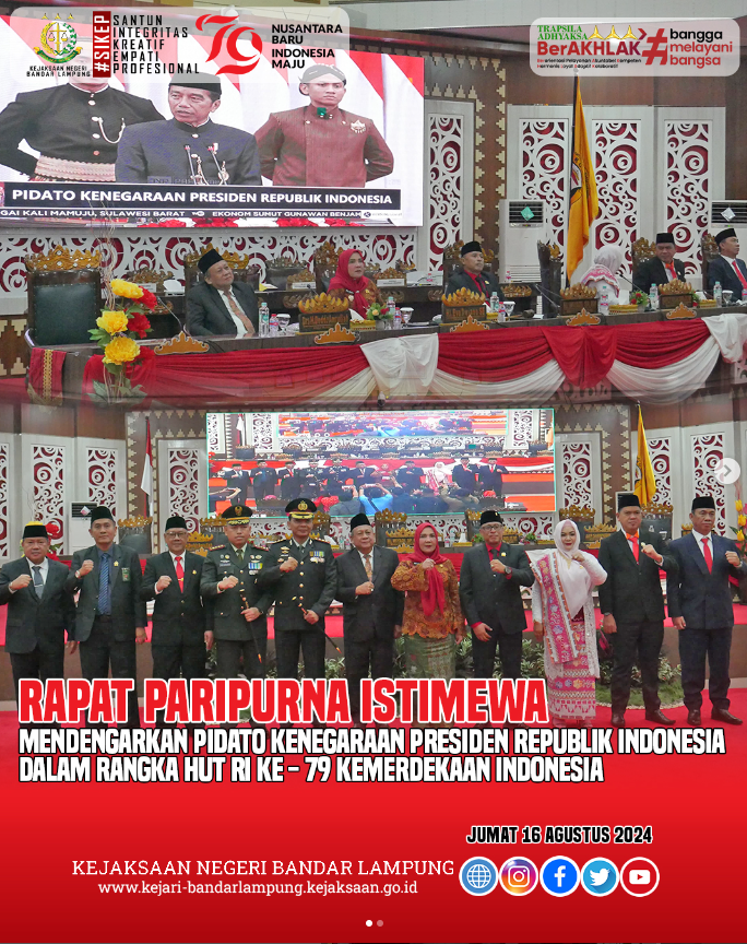Kajari Menghadiri Rapat Paripurna Istimewa Mendengarkan Pidato Kenegaraan Presiden Republik Indonesia HUT RI ke – 79 Kemerdekaan Indonesia Jumat, 16 Agustus 2024