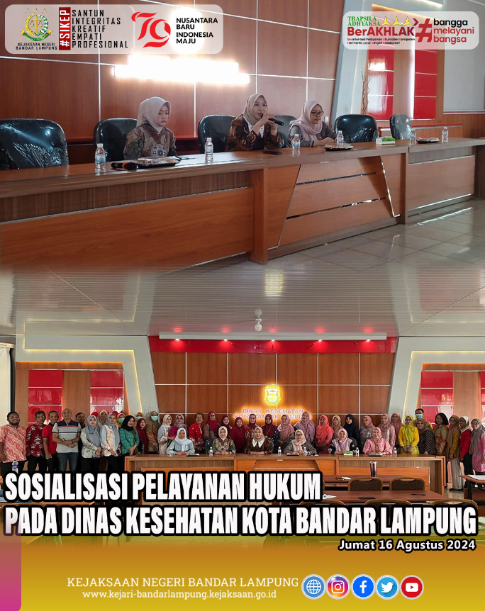 Sosialisasi Pada Dinas Kesehatan Kota Bandar Lampung Untuk Memitigasi Resiko Dalam Pelaksanaan Tugas Melalui Bidang Perdata dan Tata Usaha Negara Jumat, 16 Agustus 2024