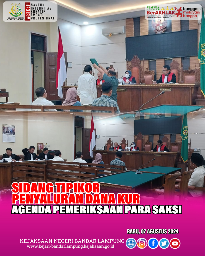 Jaksa Penuntut Umum Kejari Bandar Lampung melaksanakan Sidang Tipikor penyaluran dana KUR tahun 2022 Rabu, 7 Agustus 2024