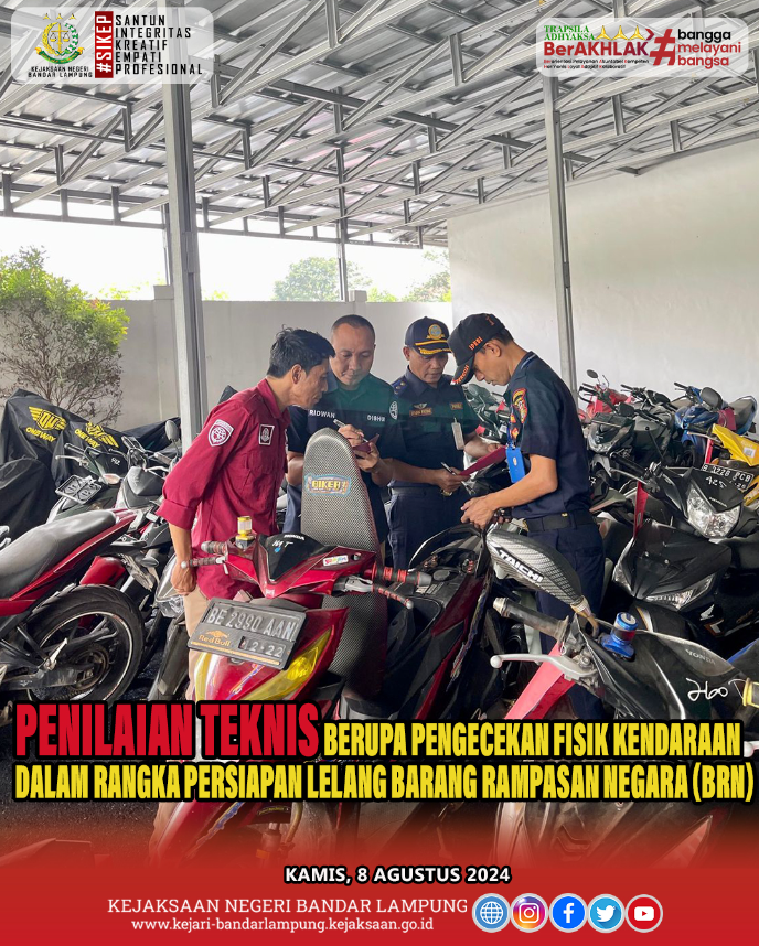 Pengecekan Fisik Kendaraan Dalam Rangka Persiapan Lelang Barang Rampasan Negara (BRN) Kamis, 8 Agustus 2024