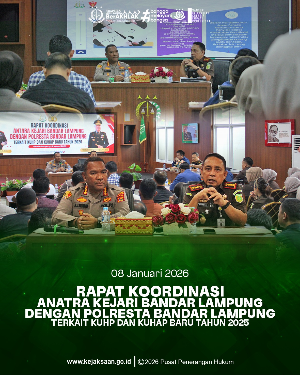 Kejaksaan Negeri Bandar Lampung Gelar Rapat Koordinasi Bersama Polresta Bandar Lampung Terkait Implementasi KUHP dan KUHAP Baru, Kamis, 8 Januari 2026. Kamis, 8 Januari 2026