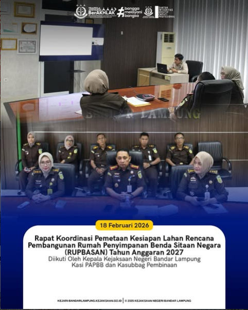 Rapat Koordinasi Pemetaan Kesiapan Lahan dalam rangka Perencanaan Pembangunan Rumah Penyimpanan Benda Sitaan Negara (RUPBASAN) Kejaksaan Republik Indonesia Tahun Anggaran 2027 yang diselenggarakan oleh Kejaksaan Agung melalui Biro Perencanaan. Rabu, 18 Februari 2026