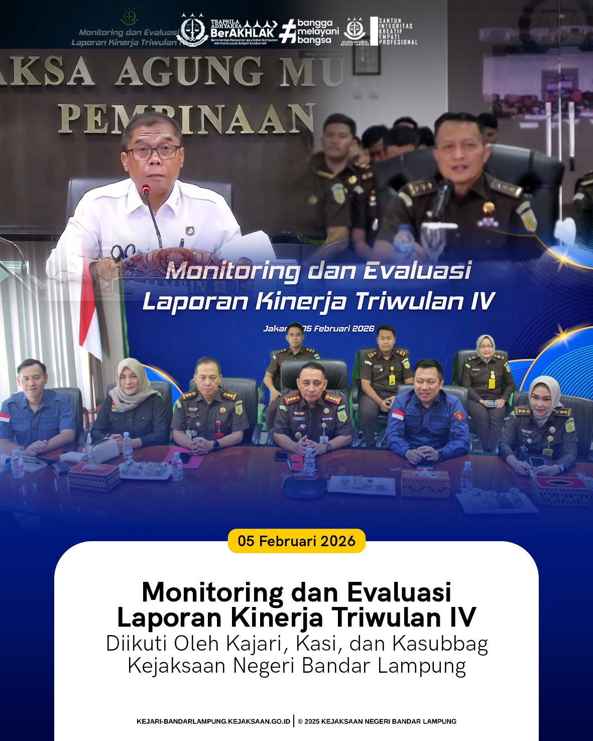 Kejaksaan Negeri Bandar Lampung Ikuti Monitoring dan Evaluasi Laporan Kinerja Triwulan IV Kamis, 5 Februari 2026