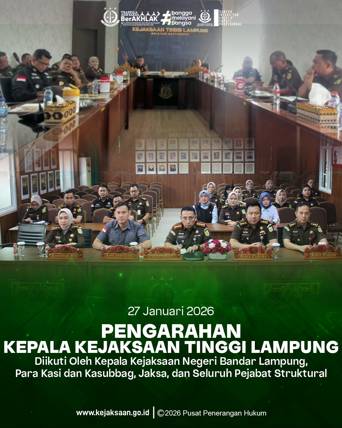 Penguatan Nilai BerAKHLAK: Kajari Bandar Lampung dan Jajaran Ikuti Pengarahan Kajati Lampung Rabu, 28 Januari 2026