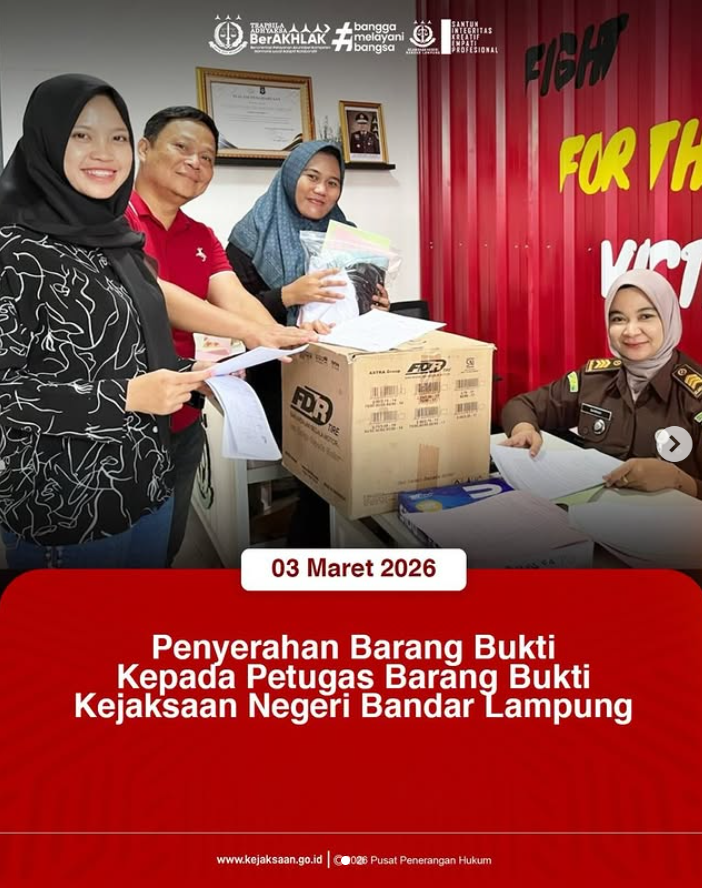 Penyerahan Barang Bukti Kepada petugas Barang Bukti Kejaksaan Negri Bandar Lampung Rabu, 4 Maret 2026