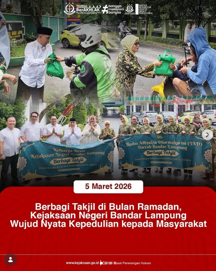 Berbabi Takjil di Bulan Ramadan, Kejaksaan Negri Bandar Lampung Wujud Nyata Kepedulian Kepada Masyarakat Kamis, 5 Maret 2026